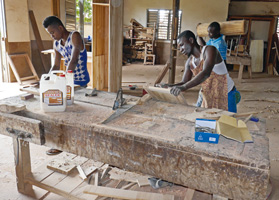 Unsere Handwerksschule in Kwasibuokrom in Ghana/Westafrika gleicht einer Werkstatt fürs Leben: Beim Hobeln und Schweißen, Programmieren und Installieren bekommen junge Menschen den notwendigen Feinschliff, um nach ihrer Ausbildung eine gute Stelle zu finden. Auch Pflegeanwärterinnen und -anwärter der benachbarten Schule werden hier unterrichtet, damit sie sich selbst und möglicherweise auch ihre Familien schon bald mit ihrem Verdienst ernähren können.